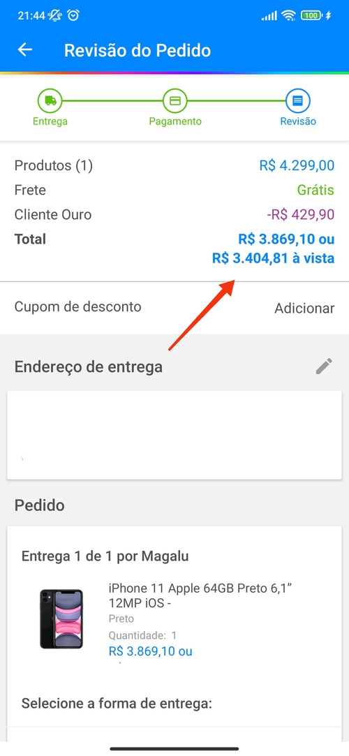 Aqui deu 3600, nao sei como funciona esse Magalu pay, soo cliente ouro…