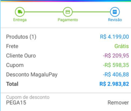 Aqui sem usar MPay sai mais "barato" considerando Cash 2.441 e ainda ganha mais 2% do cartão Magalu.