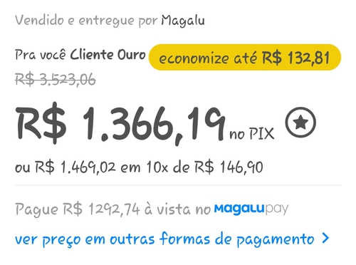 Entrei em contato com uma vendedora pelo próprio app, expliquei a situação e pedi ajuda para pagar esse valor com desconto tendo somente 1300 na conta.Uma atendente foi super atenciosa e me ofereceu a opção de pagar o valor com desconto magalupa, mas por pix.Talvez seja útil pra quem não quer abrir conta lá.Comprei um no magalu por R$ 1350,00 em 10x, excelente monitor! Uso no Series S e como monitor do notebook.