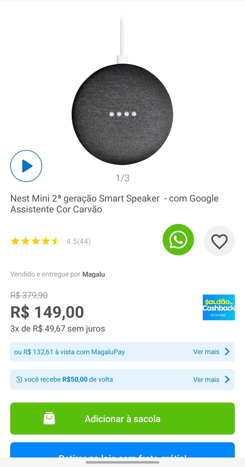 Esse valor de R$ 83,00 é só a vista. Pra quem está com o cartão já meio estourado não vale a pena. Peguei na Americanas mesmo por R$ 136,00 parcelado em 10x no AME.
