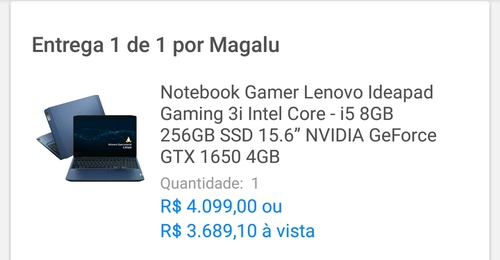 [MagaluPay R$3500] Notebook Gamer Lenovo Ideapad Gaming 3i Intel Core i5-10300H GTX 1650