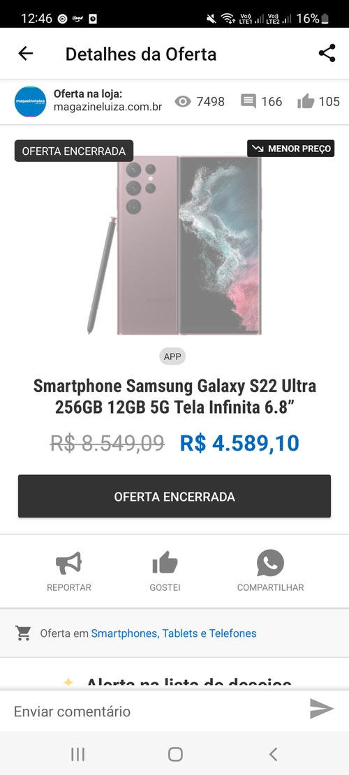 Aqui ta 7.600 e não apareceu outro preço nem opção magalupay