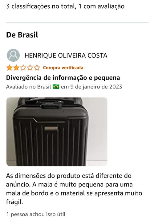 Como no tem avaliação fui pesquisar. E achei apenas 1 comentário no tamanho P do mesmo modelo. Em outros modelos da marca vi avaliações boasComprei essa mala junho do ano passado. Ela é muito boa. Está com preço da pequena.