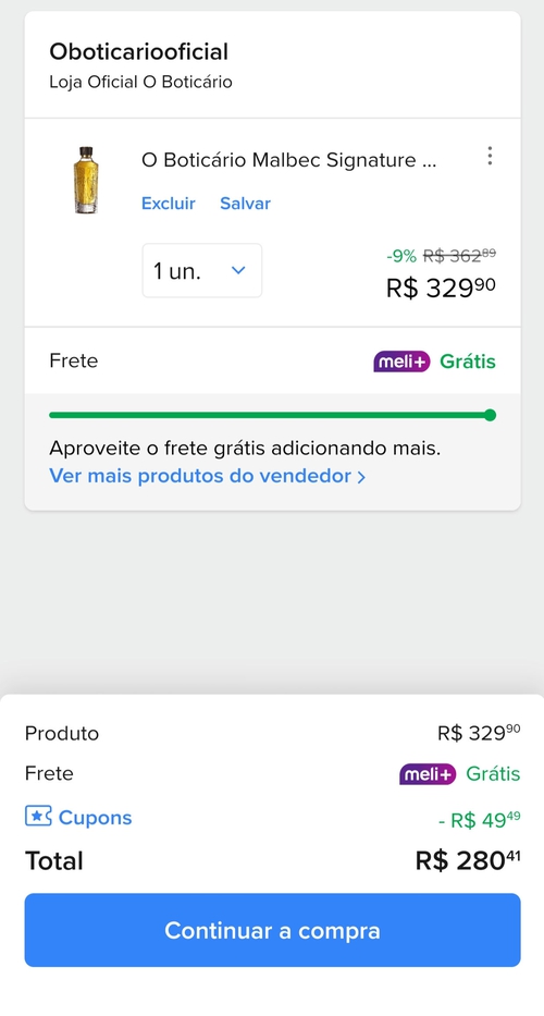 Pelo APP do Boticário daí mais barato. 10% de desconto com o cupom APP10