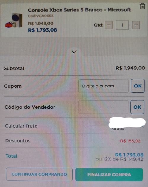 Cada as outras grandes lojas pra Bugar esse valor top... Magalu, Americanas, Submarino, Fast, Amazon, Casas Bahia & Etc ... Cadê ??? Cadê ??? : (