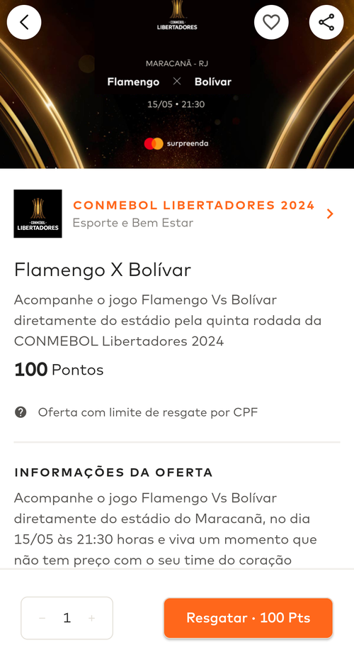 Master. Surpreenda | Assista ao jogo Flamengo × Bolívar por 100 pts