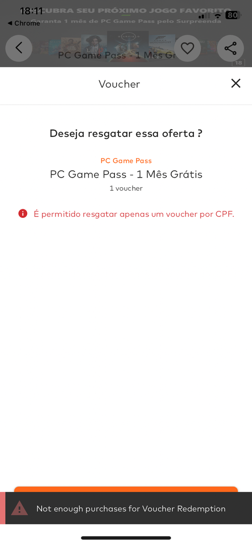 Aqui a página voltou e quando fui resgatar fala que precisa de 1 voucher lá. E olha que criei conta ontem