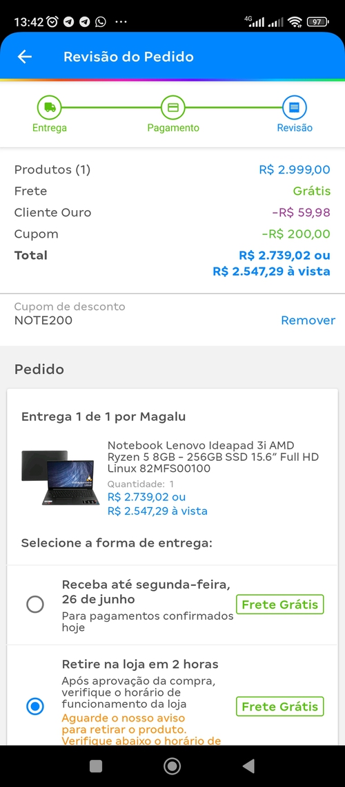 Para mim, esta dando 2460, pelo app, cliente ouro e cartão magalu ouro