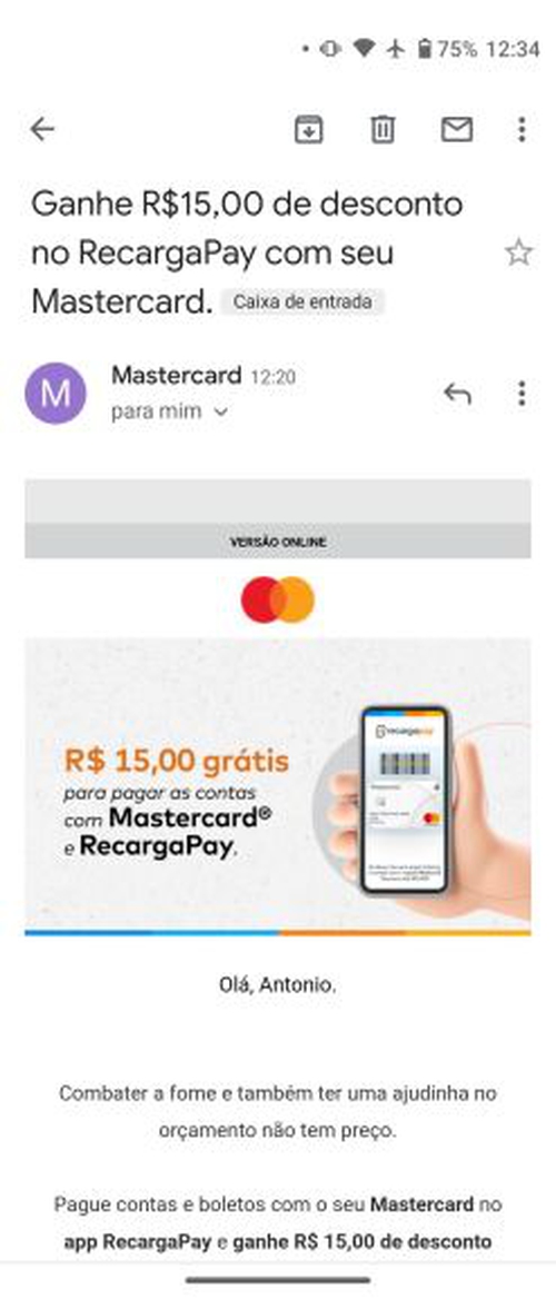 [Mastercard/Primeiro Uso] R$15 para pagar boletos no RecargaPay