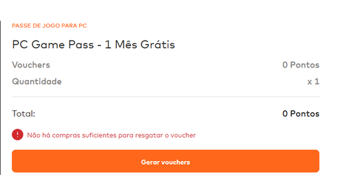 Alguem tem mais? aqui apareceu Not enough purchases for Voucher Redemption