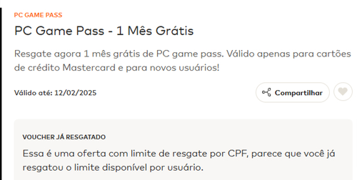 [MASTERCARD SURPREENDA] - 1 MÊS de GAME PASS