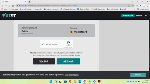 Acesso ao app/site BTFIT até 13/12/2023 assinando com qualquer cartão mastercard