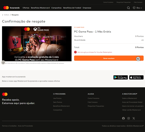 O meu tá dando esse erro tbm, not enough purchasse for vouncher redemption, se alguém conseguir me doar um eu agradeço