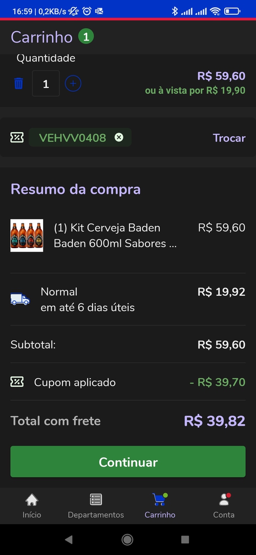 Porr está difícil poupar dinheiro nesse app, direto promoção de cerveja, aí não tem oque me faça segurar kkkk. As becks e corona já chegou e já tomei tudo kkk agora repor o estoque