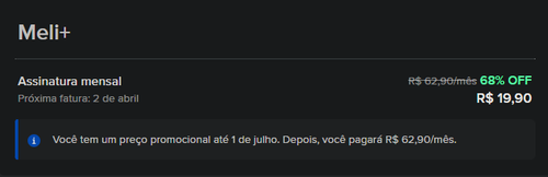 Pessoal a promoção apareceu aqui pelo PC, mas só vai aparecer se já for assinante Meli+ com disney, quem nao for assinante, assine e depois troca o plano para este premium por 19,90. Só tem que lembrar depois de 4 meses voltar ao valor padrao ou cancelar o Meli +. Talvez a promoção seja para todo mundo e não só selecionados.