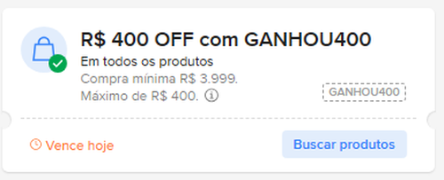 Eu consegui usar aqui! E aí usei o de 100off do Santander. No total consegui 500off.