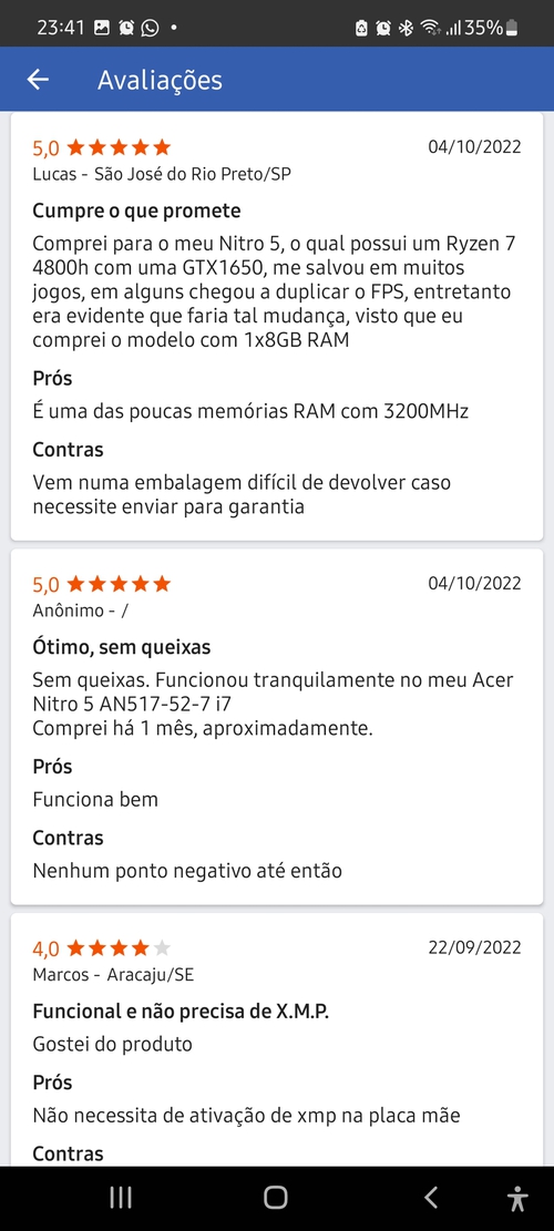 Vou colocar algumas avaliações via foto de quem comprou que dizem que estão utilizando no Acer Nitro 5.