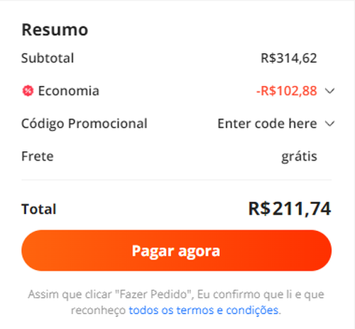 Aqui ta R$204. Só prq to liso 🥲