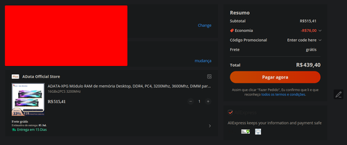 Cuidado ao comprar na loja oficial da Adata!!! Vários relatos de declarações de valores absurdos por parte da loja da Adata, coisa de declarar memórias como essa por 1.000 dólares. Evitaria pegar desse vendedor por enquanto