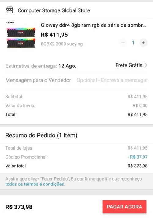 MEMÓRIA RAM GLOWAY BLOOD SHADOW DDR4 RGB 2x8GB 3000MHZ | R$374