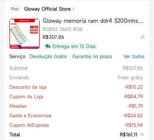 A de 3600mhz fica mais barato nesse mesmo anúncio, pegando o outro cupom do vendedor, e considerando mais 17,00 de desconto comprando a cada 150,00