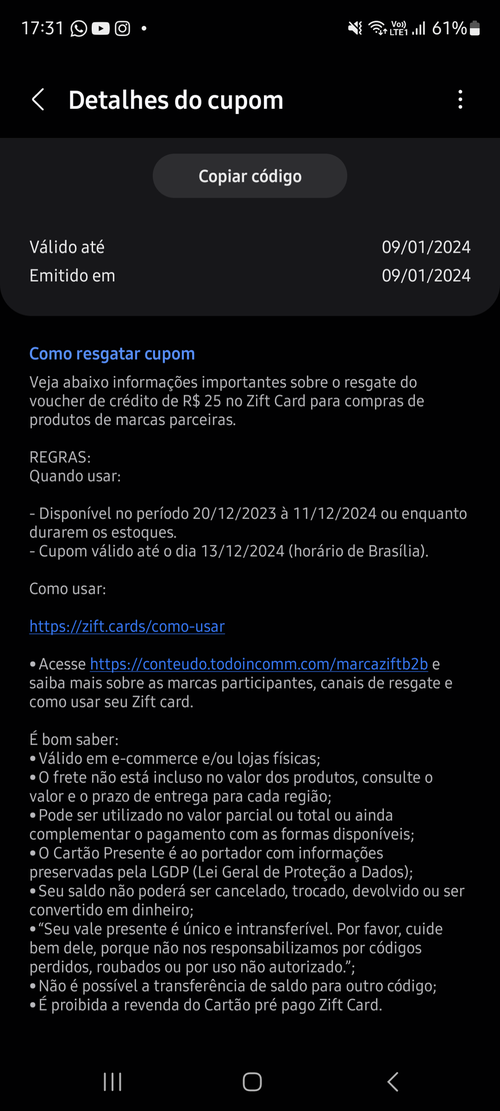 sorte q eu tinha testado no dia pra ver se pegava na riachuelo e tirei 1 print..consegui usar hj msm como expirado no members