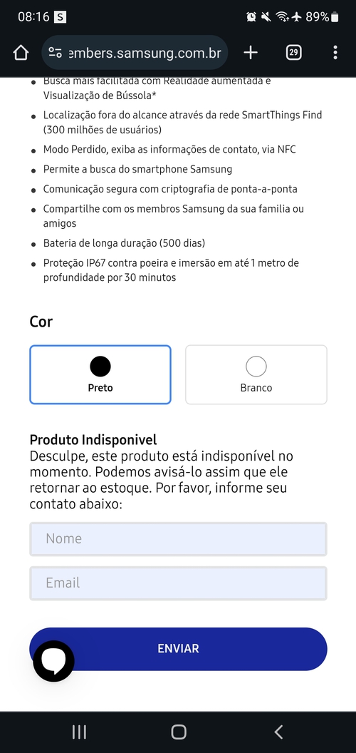 (Entrei pelo aplicativo Samsung Members. Tem que estar logado. Interior do RS estava disponível.)