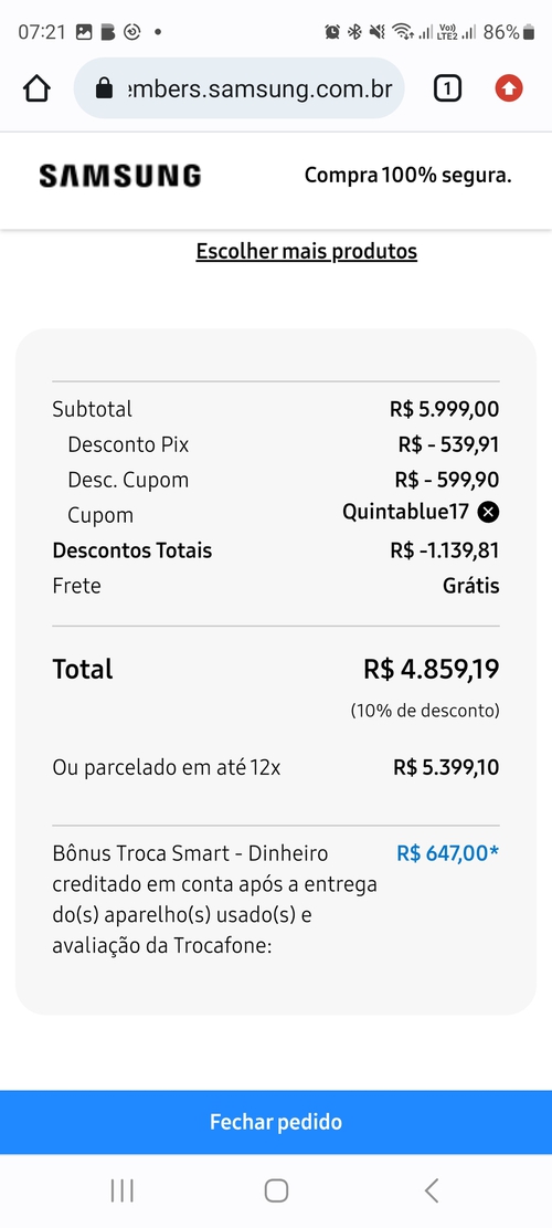 Alguém consegue usar a troca smart? Aparentemente quando uso o preço sobe de 53999 para 5999 para depois dar o desconto