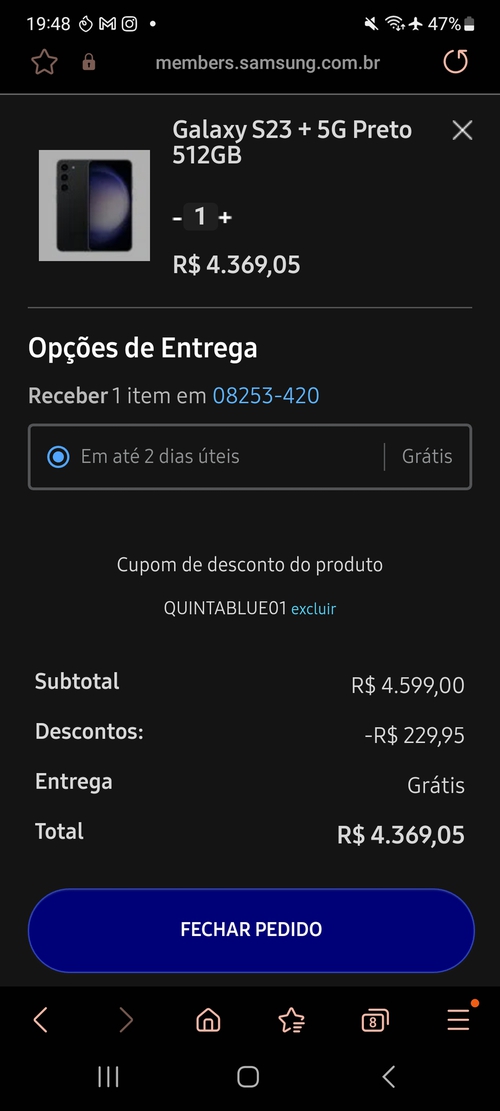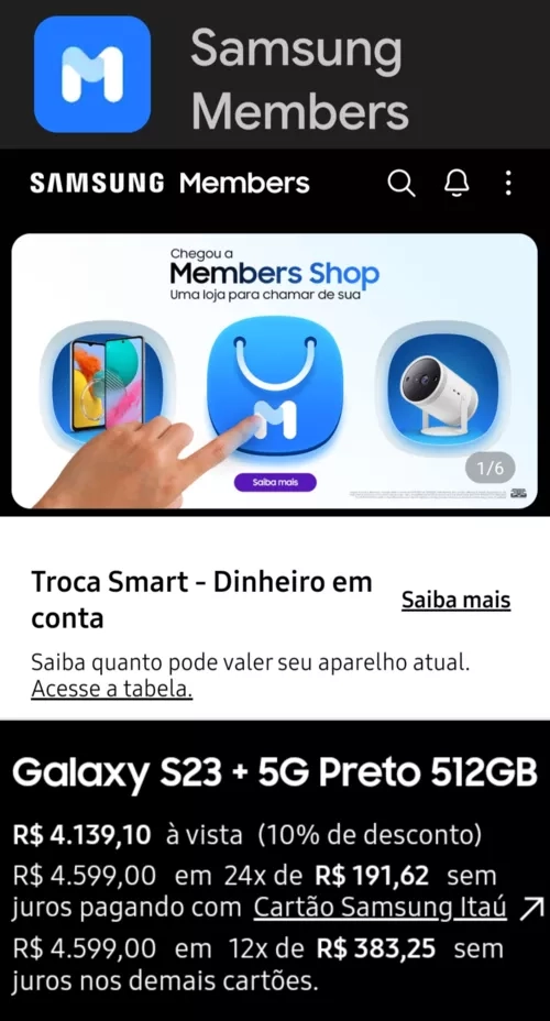 Necessário ter o app "Samsung Members" instalado em seu aparelho Samsung, e acessar o banner "Members Shop".