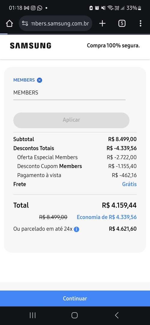 Na Samsung da pra combinar pagamentos?