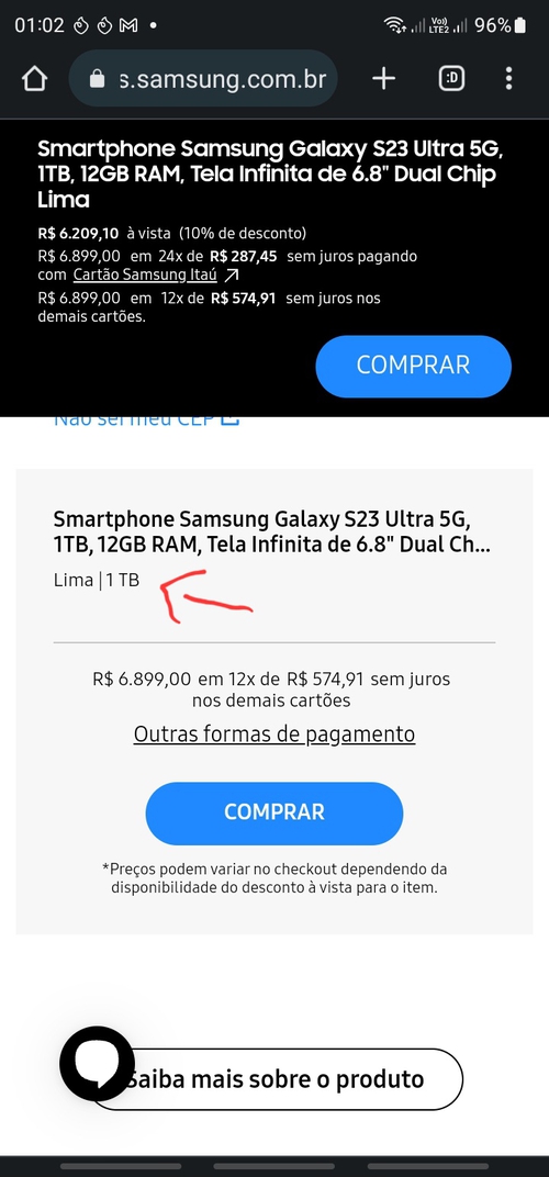 Depois que vc faz o pedido tem como imprimir uma folha com informações da compra e lá informa que o s23 ultra é de 1Tb.