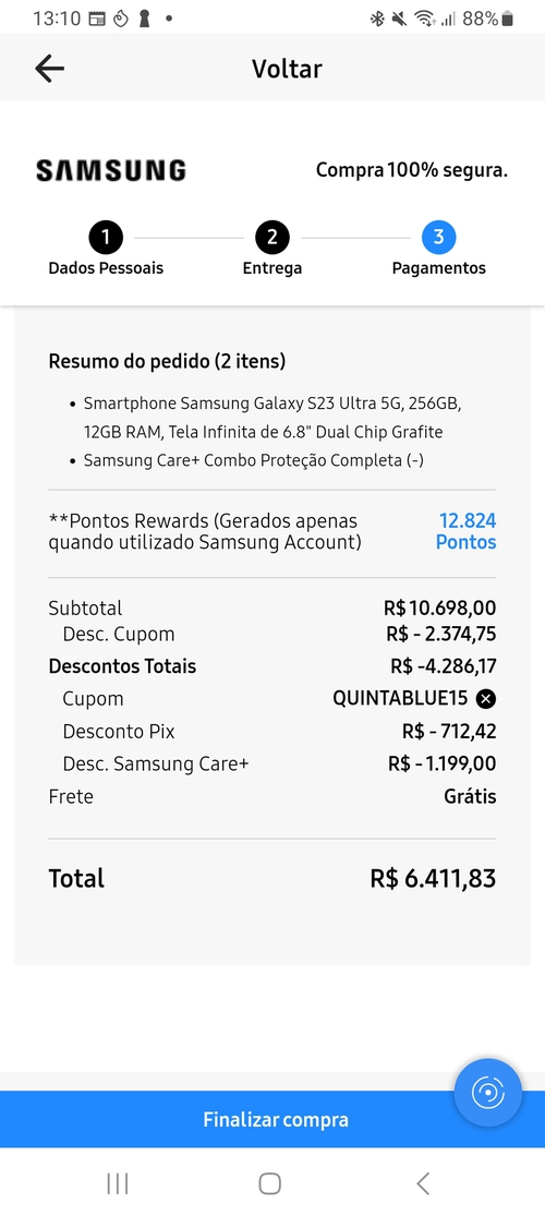 Eu tbm não consegui chegar a esse preço, mesmo entrando pelo APP Samsung Members. Fui até o final, escolhi a forma PIX e o cupom diz que não está funcionando