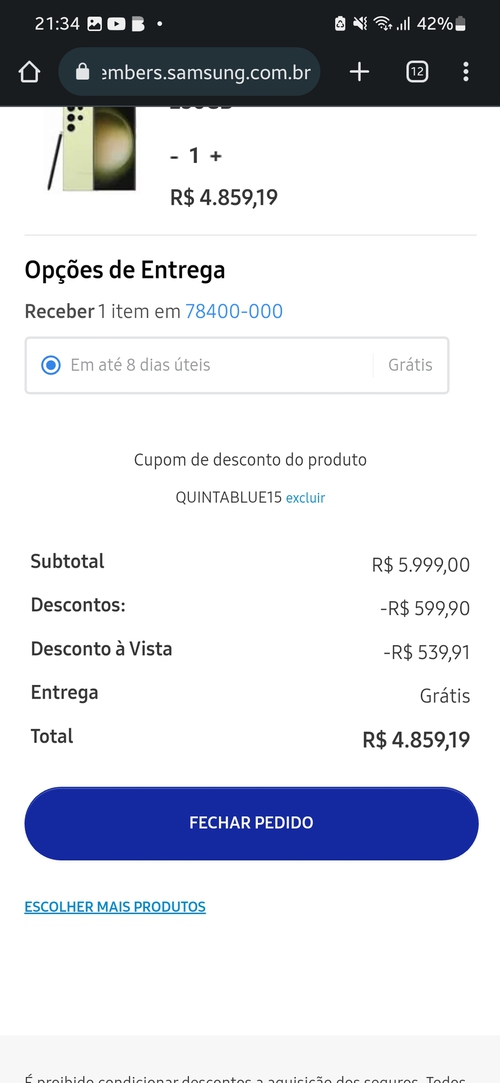 Não consigo chegar nesse valor mesmo entrando pelo app Samsung membro. Talvez esteja fazendo algo de errado