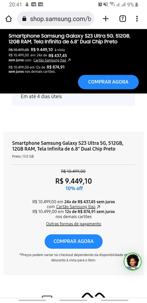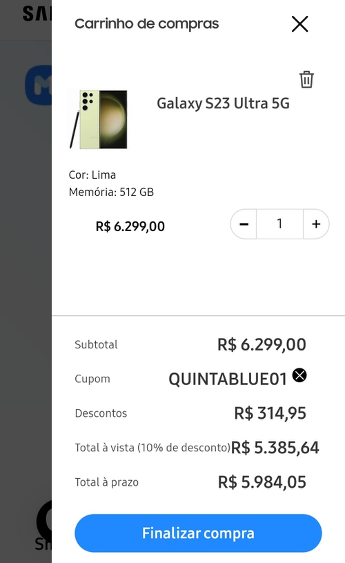 Fui simular na shop samsung o valor fica 1000 reais a mais que na members shop