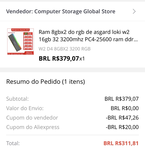 Melhor peça de PC para comprar no Ali. Muito mais barato que no BR, altíssima qualidade, super bem construída (Tanto o hardware quanto a carcaça), além de tudo é lindassa. Chega rápido e quase 0 chances de ser taxado (Aliás, faz muito tempo que não sou taxado no Ali, vlw ai RF). Usando a 1 anoe recomendo horrores. Tinha 2x16 e agora no 11.11 comprei mais 2 (agora 4x16 rodando a 3200 por XMP numa Steel legend B450M).