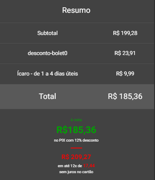 Não sei se é bug, mas quando coloca no carrinho pra concluir a compra o valor vai para 175