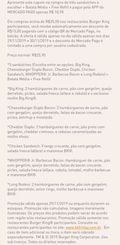 [Mercado Pago] 3 Sanduíches + Batata média + Free Refill