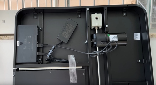o carregador estilo de notebook é preso com fita velcro, aparece aos 4:59 do vídeo
