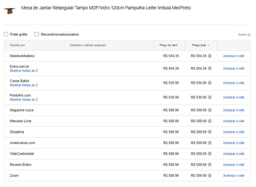 - Menor preço segundo o Google Shopping