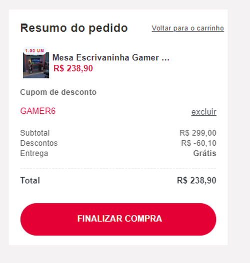 Usando o Cupom GAMER6 + 15% de desconto no PIX, ela sai por R$ 238 com frete grátis para sul e SP.
