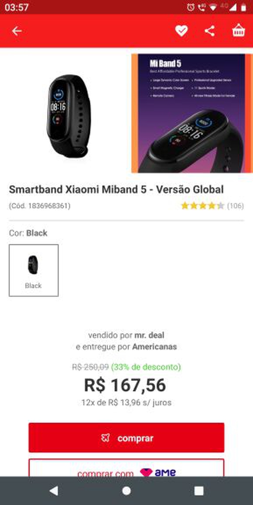 O produto demorou muito pra chegar e ainda ficou mais de 1 mês na alfândega. Ainda, foi taxado em R$154 (no preço que paguei, ou seja, 100%). Pedi a revisão dos tributos que demorou mais de 1 mês para ser respondida, eles não removeram a taxa, mas, diminuíram para 60% do valor total. Conclusão, solicitei a devolução do produto. Mas, enquanto o produto estava em análise na revisão, eu estava em contato com a Americanas pelo RA e por lá, recebi um vale compras de R$120 para usar em qualquer produto.