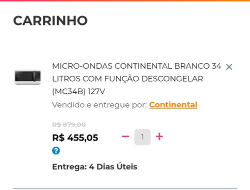 Micro-ondas Continental Branco 34 Litros com Função Descongelar (MC34B)