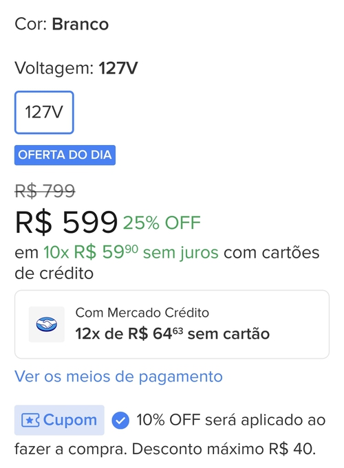 💰 Pagamento em até 10x sem juros no cartão de crédito utilizado o cupom em destaque