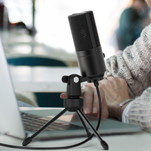 Microfone usb com padrão polar cardióide para gravação, captura sua voz de forma clara e suave quando o microfone é apontado para você.