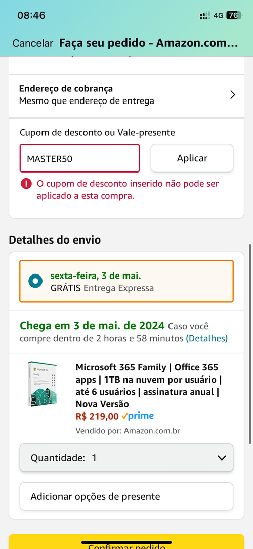 Cupon não funcionou