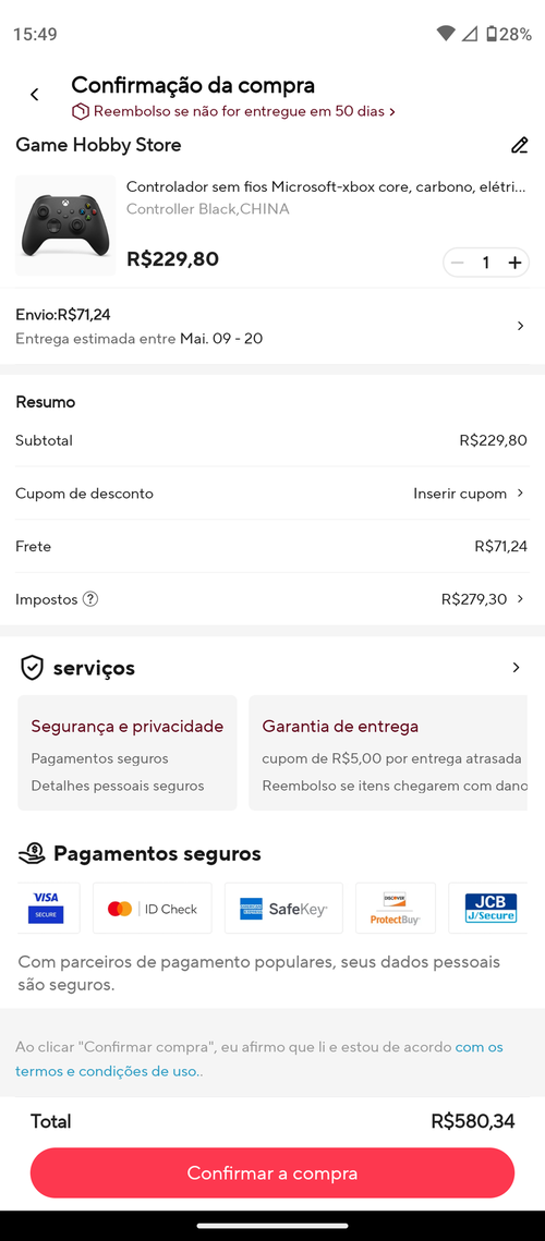 E pra quem n ta indo direto tem esse control, valor final fica +- R$260 contando impostos e frete