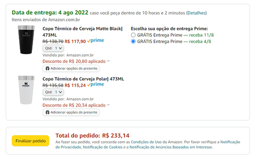 SÓ PRA DEIXAR CLARO, SAI POR 115 CADA COPO E TEM Q COMPRAR 2! NÃO TEM NADA DE 2 PELO PREÇO DE 1