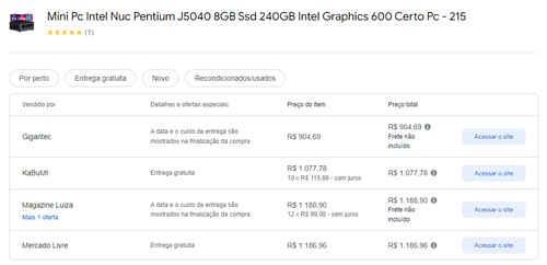 - Intel NUC Kit NUC7CJYH – vem sem RAM e armazenamento, mas similar em formato NUC.