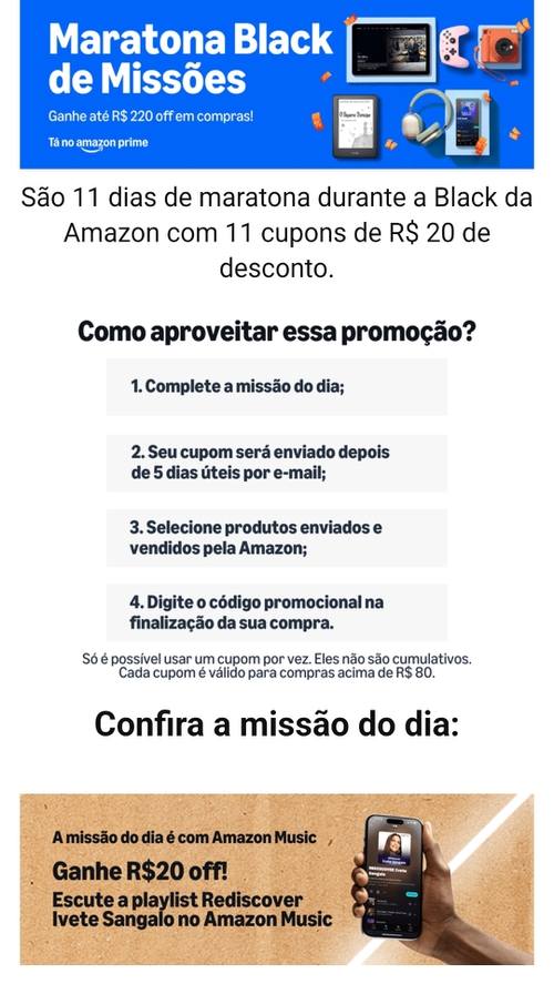 Desde ontem eu clico e essas merdas de missões não abrem. Vou ouvir essa porcaria procurando pelo Amazon Music mesmo. Espero que conte.