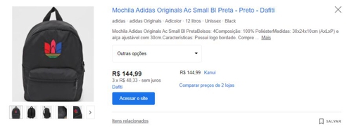 Mochila Adidas Originals Ac Small Bl Preta | R$ 129